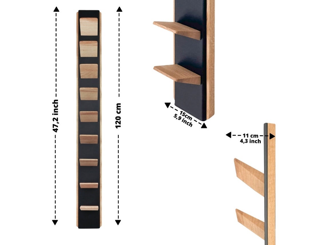 Mit kompakten Maßen von 120 x 15 x 11 cm passt DRAPE perfekt in Küchen, Esszimmer oder Wohnzimmer. Das wandmontierte Design spart Platz und bietet dennoch eine stilvolle Präsentation für Ihre Weinsammlung.