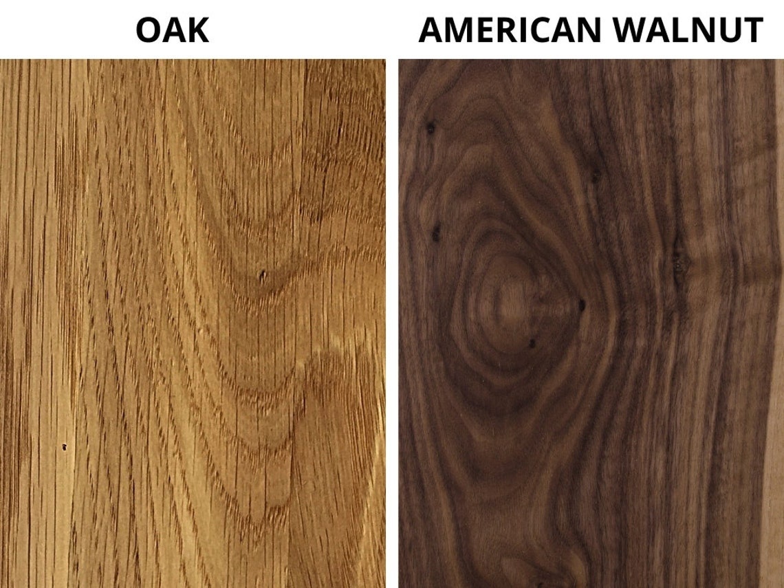 - Holzarten: Wählen Sie zwischen Eiche und Amerikanischem Nussbaum.